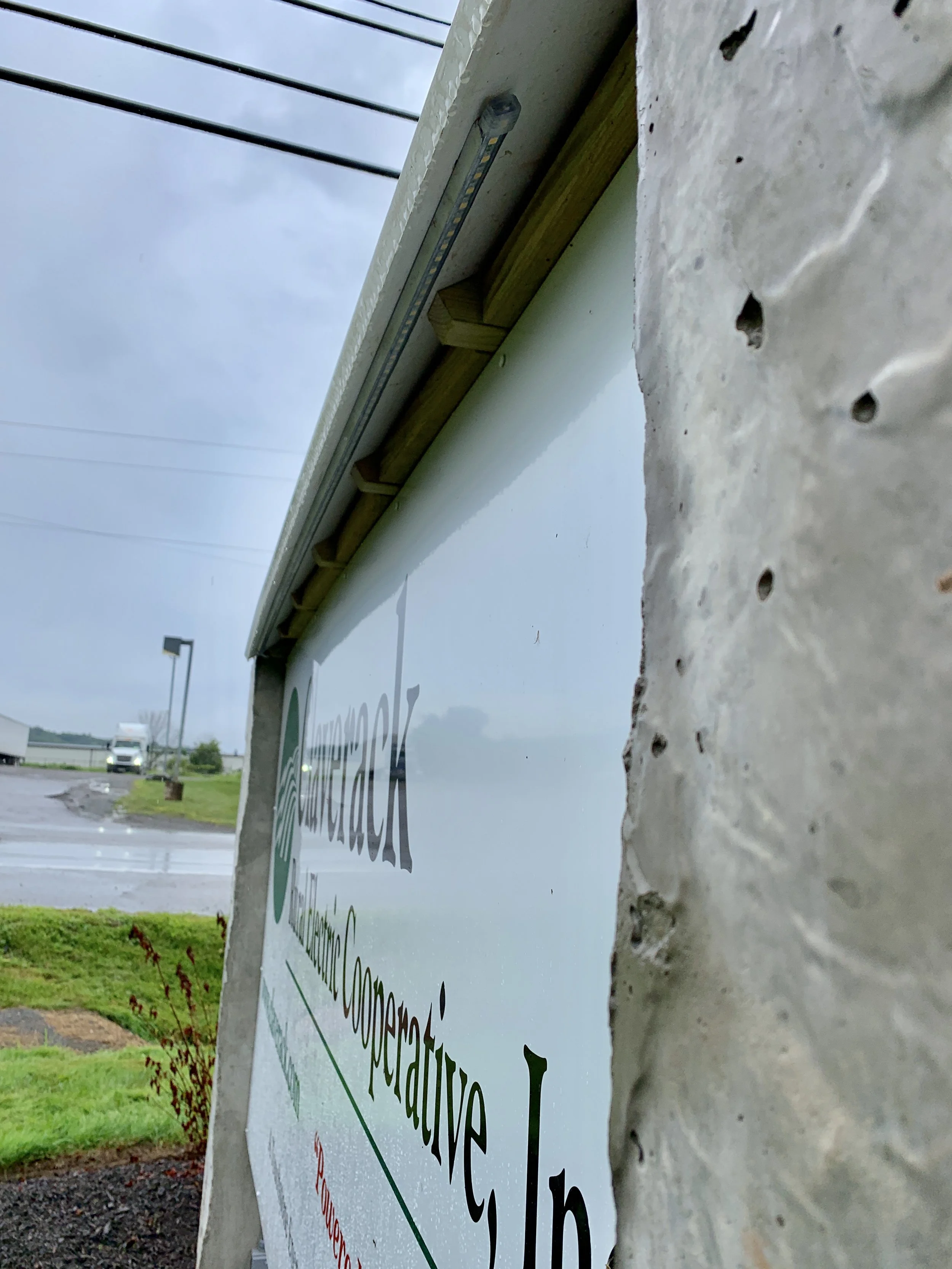 Here are a few completed highlight images showing the new cap and LED strip lighting Spectrum Electrical Services, Inc. installed for Claverak Rural Electric Cooperative, Inc. at their Tunkhannock and Montrose facilities.